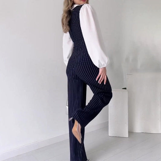 🌸Herbstschlussverkauf🌸Zeitlich begrenzt 44% Rabatt+kostenloser Versand✈️💕Je mehr Sie kaufen, desto höher ist der Rabatt💕Langärmliger Jumpsuit mit gestreiftem Revers für Damen