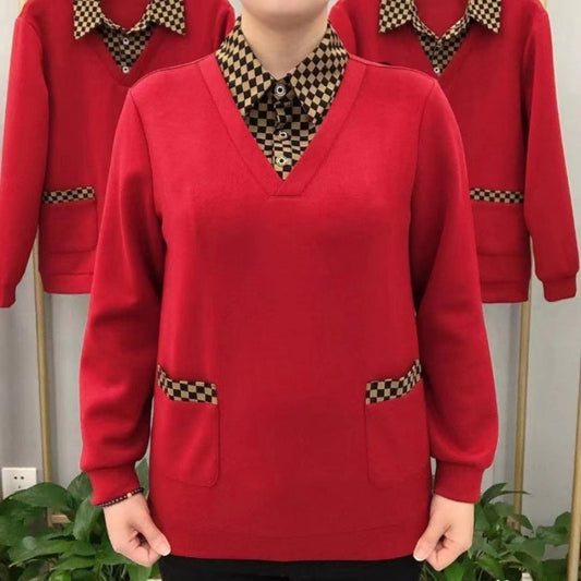 Women's Trendy Casual Long Sleeve Top with Checkered Collar