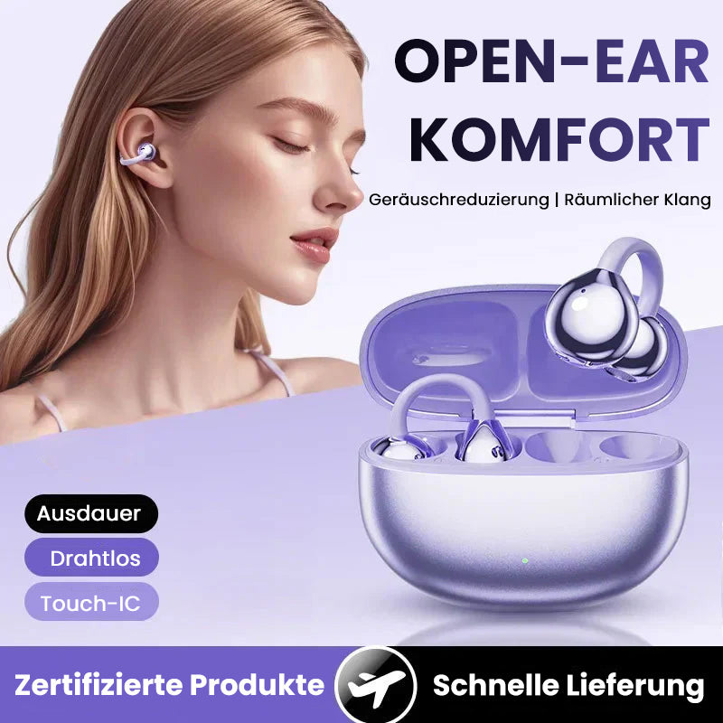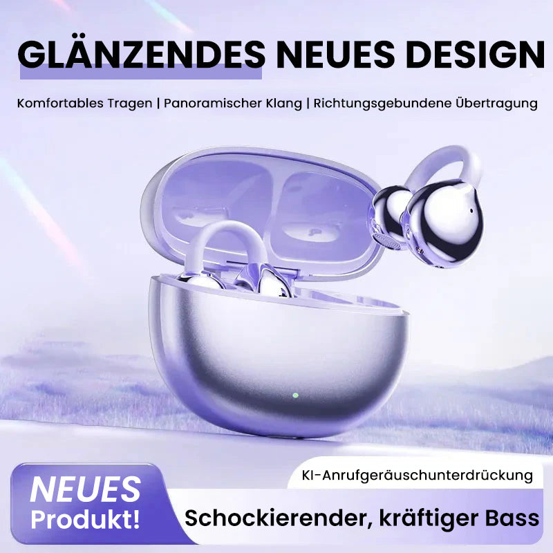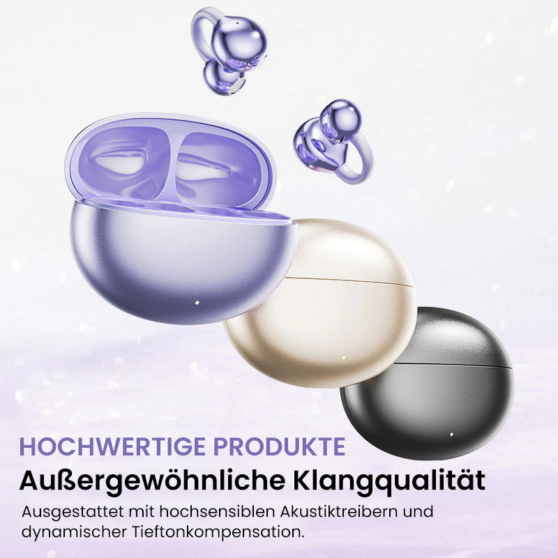 Erleben Sie die perfekte Kombination aus Stil, Komfort und hervorragender Klangqualität mit unseren Bluetooth-Ohrhörern mit Ohrclip. Dank modernster Bluetooth 5.4-Technologie, Hi-Fi-Sound und einem federleichten Design genießen Sie ein müheloses und intensives Hörerlebnis.
